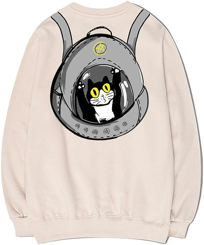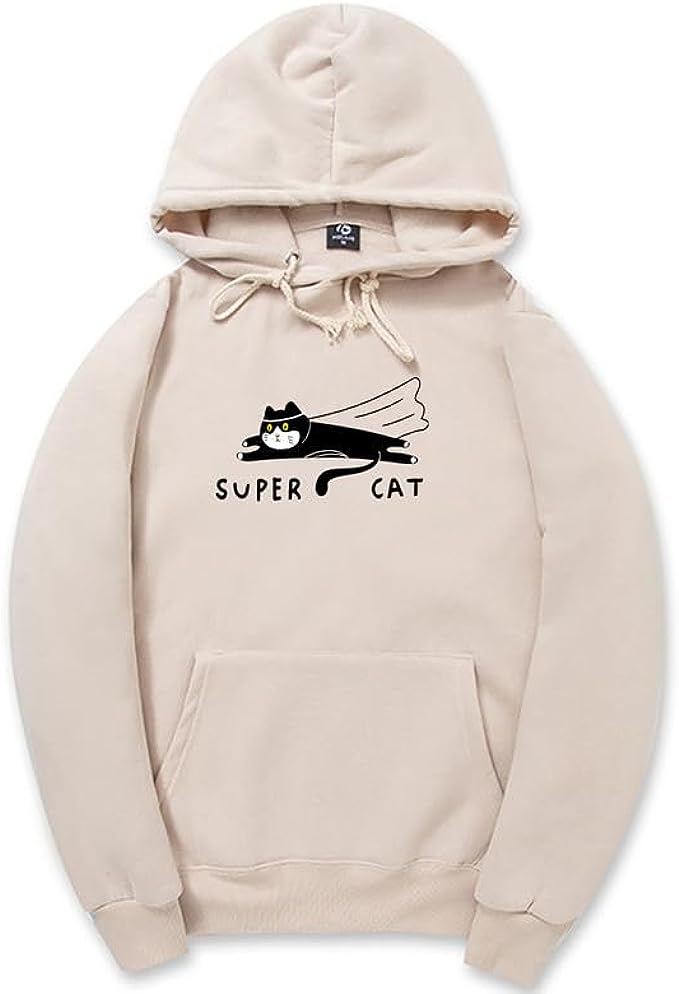 CORIRESHA Teen Funny Cat Hoodie Long Sleeve Drawstring Kangaroo Pocket Soft Cotton Sweatshirt
