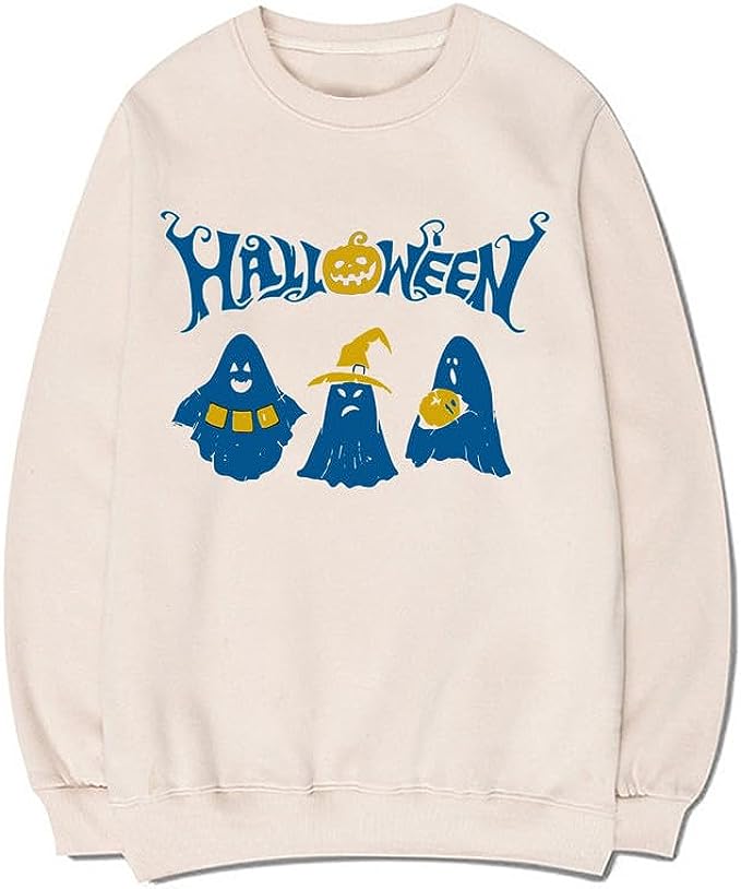 CORIRESHA Men's Halloween Costume Ghost Pumpkin Pattern Funny Contrast T-Shirt