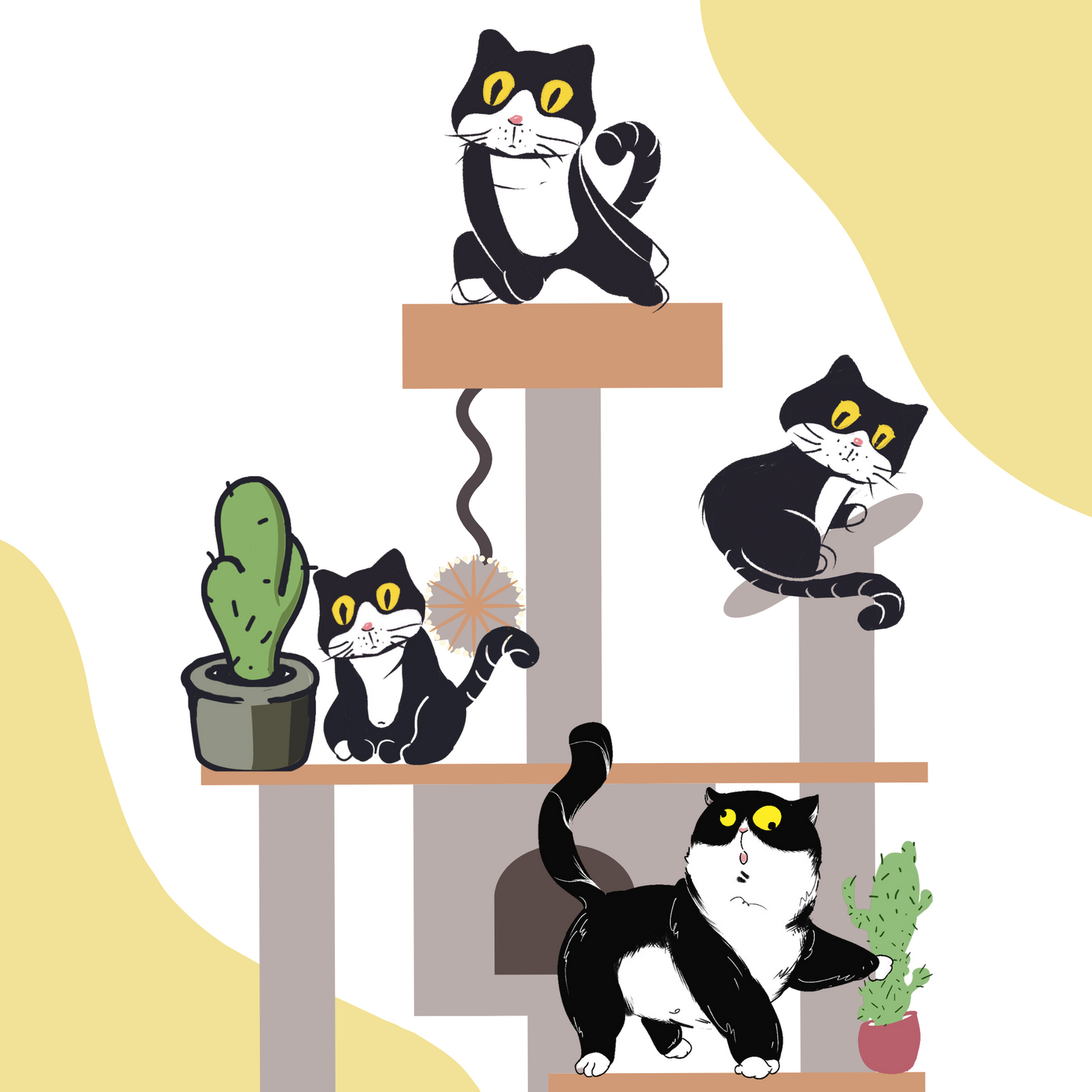 CORIRESHA Women's Cute Cartoon Cat Round Neck Short Sleeve Summer Casual Cozy T-Shirt