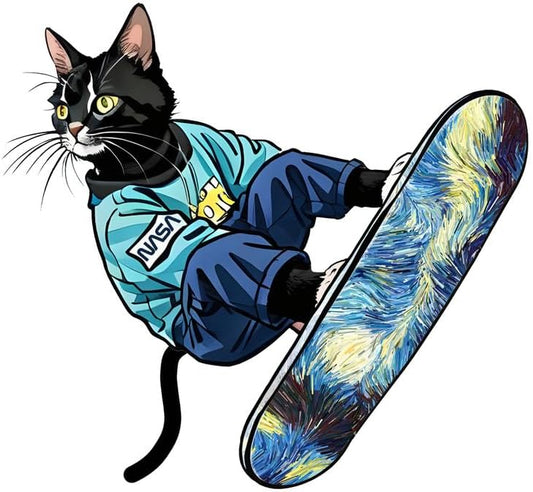 CORIRESHA Unisex Funny Skateboard Cat Sweatshirt Long Sleeve Soft Cozy Fashion Hoodie