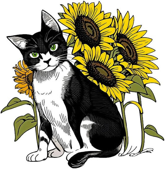 CORIRESHA Cute Cat Hoodie Casual Long Sleeve Drawstring Sunflower Sweatshirt