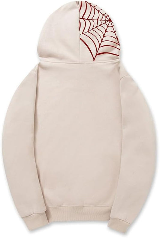 CORIRESHA Unisex Y2K Spider Web Hoodie Casual Long Sleeve Drawstring Basic Halloween Sweatshirt