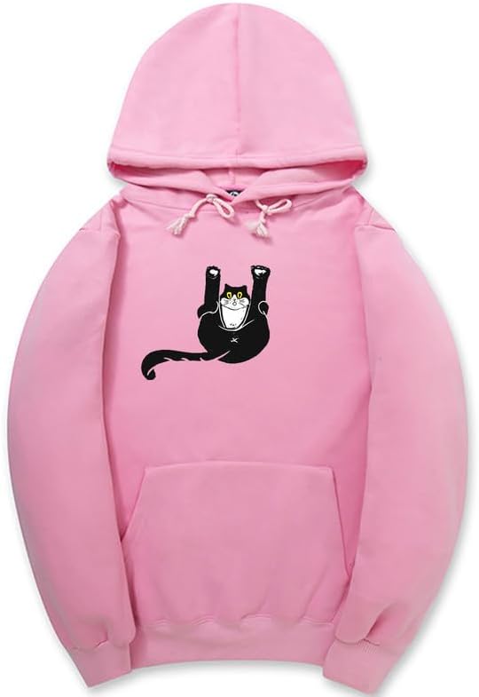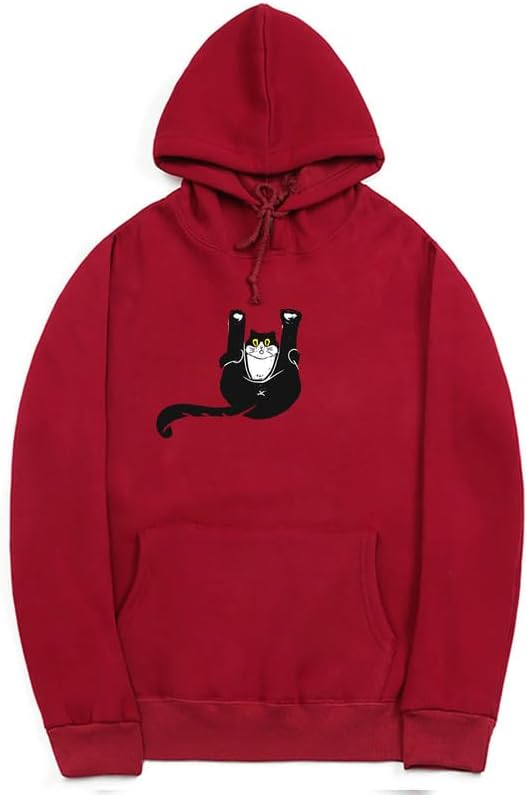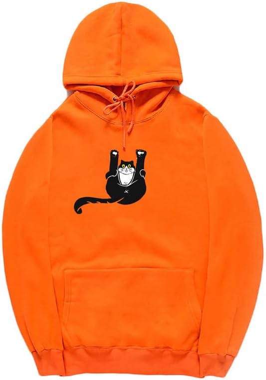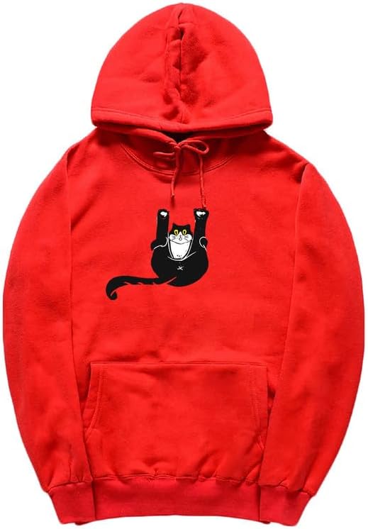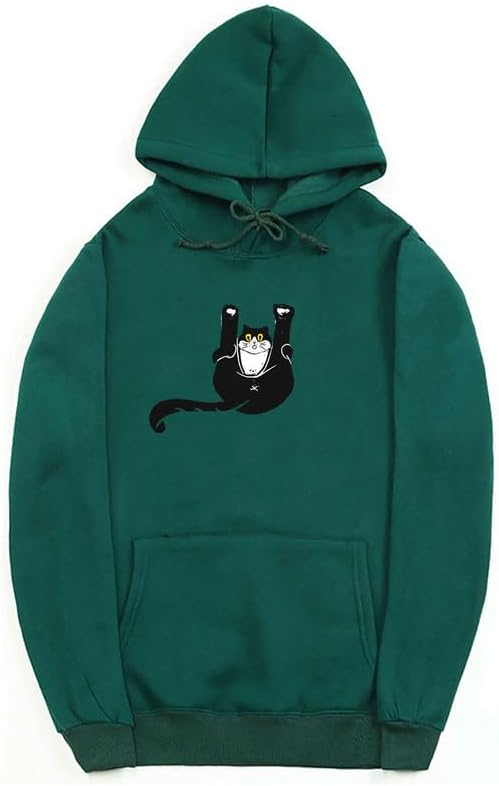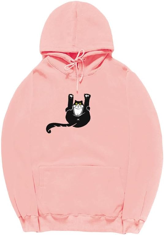 CORIRESHA Teen Funny Cat Hoodie Casual Drawstring Kangaroo Pocket Basic Cute Sweatshirt
