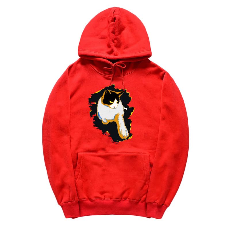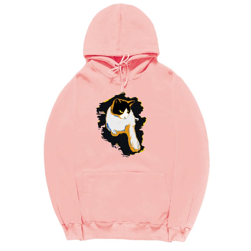 FEATURES: Adjustable drawstring hood, long-sleeve pullover, cute cat graphic, functional kangaroo pocket, fleece lining and ribbed trim, regular fit basic hoodie.